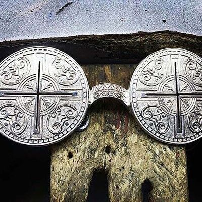 19. yüzyıl örneği, at kılından oluşturulan gözlükler, Sibirya’nın güneyindeki dağlık bölge olan Irkutsk Yerel Tarih Müzesi’nde. Günlük yaşam veya kardan korunmak amaçlı değil şamanlar tarafından ritüellerde kullanılmış.