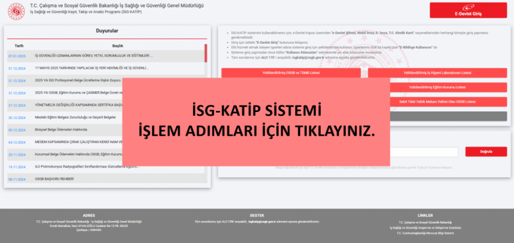 İSG-KATİP Sistemine kayıt için işlem adımları : Görsele tıklayınız