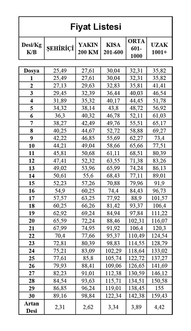 Fiyat Lİstesini indirmek için lütfen tıklayınız