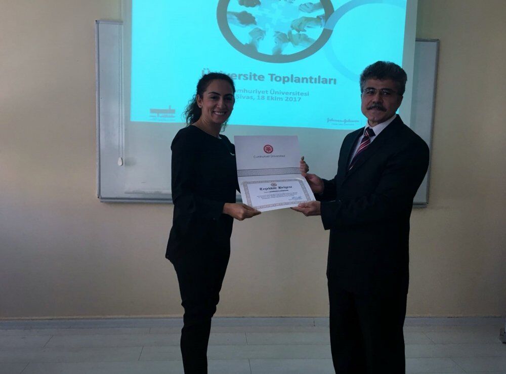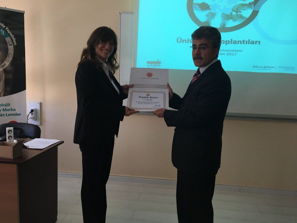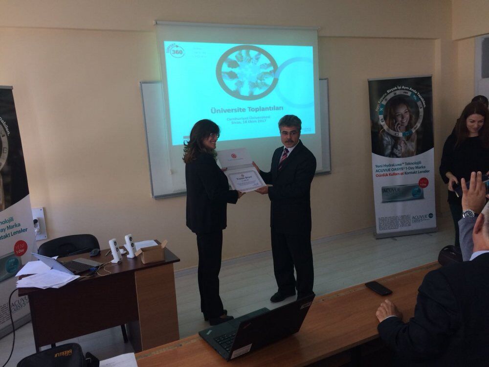Sunumun ardından Johnson & Johnson ve Opak Lens yöneticileri bu sunumla kontak lense ilişkin güncel bilgileri paylaşmak üzere olanak sağladığı için, yeni göreve başlayan Cumhuriyet Üniversitesi Sağlık Hizmetleri Meslek Yüksekokulu Müdürü Yrd. Doç. Dr. Ahmet Duran Ataş’ı makamında ziyaret ettiler. Aynı zamanda yeni göreve gelen Sn. Ahmet Duran Ataş’a hayırlı olsun dilekleriyle birlikte teşekkürlerini sundular.