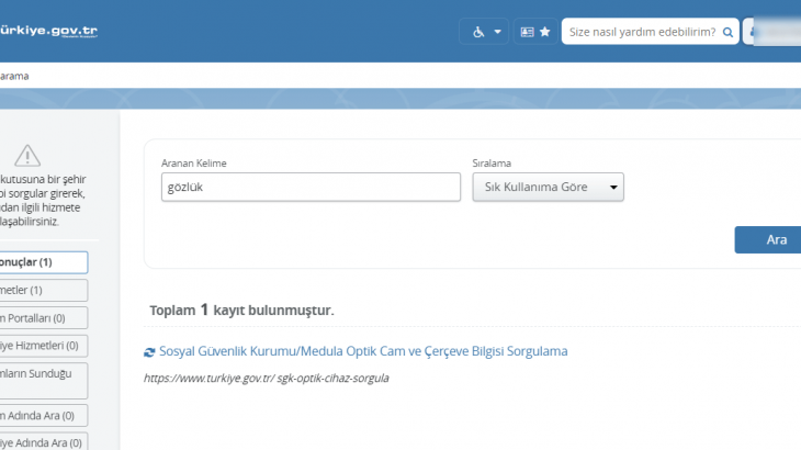 E-devlet ile gözlük hakkı sorgulama