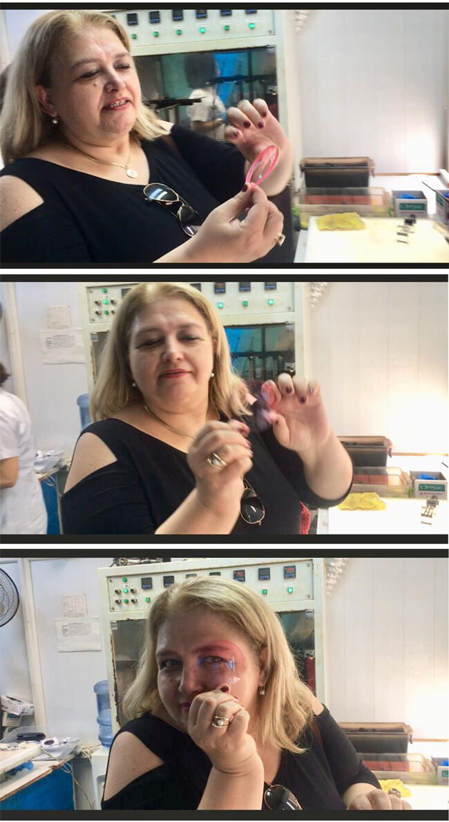 Nasıl heyecanlandım, meraklandım, sorularımla herkesi daralttım. Yazılımla el değmeden yapılan cam üretimine hayret ettim. Kişiye özel RX ve freeform üretiminde Akay Optik’in başarısına neden olan unsurları gözümle gördüm. Kalıplara yerleştirilen camların nasıl işlendiğini, kaplamaların nasıl yapıldığını, diyoptrinin nasıl verildiğini izledim. Kalite kontrol departmanındaki titizliğe hayran oldum. Güneş gözlüğü camlarının nasıl renklendiğini izledim, keyiflendim. Hatta ben de bir degrade cam renklendirdim, ve hatıra olarak aldım.